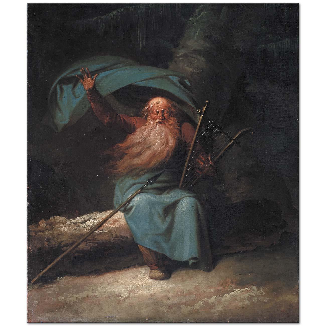 Nicolai Abildgaard'ın Ossian Kuğu Şarkısını Söylerken isimli bu eseri 1780 - 1782 tarihli olup orijinali National Gallery of Denmark Copenhagen'da bulunmaktadır. Eserin orijinal boyutu 42 x 35,5 cm'dir ve tuval üzeri yağlı boya olarak çalışılmıştır.